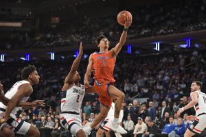 The No. 18 Florida Gators traveled to New York on Tuesday for the Jimmy V Classic at Madison Square Garden for the first time in seven years and returned home with their fourth loss of the season, falling to No. 5 UConn, 77-73.