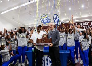 This title represents the Gators’ ninth SEC indoor title and the women’s first since 2014. Coach Mike Holloway continues his run of success, adding a 19th conference championship to his decorated career at Florida.