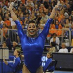 Junior Marissa King after she sticks her landing for the highest Florida score on beam, a 9.95.
