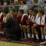 Will Yeguete (15)and Erik Murphy (33) wait on the sidelines to be put in the game Wednesday night.