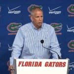 The Florida Gators were fired up and more than ready to kick off their college football season last Saturday, but unfortunately due to lingering rain and dangerous lightning the season opener was suspended. On Monday, Athletic Director Jeremy Foley, coach Will Muschamp and wide receiver Valdez Showers discussed Saturday night’s suspended game versus Idaho and the squad’s plans moving forward.