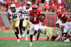 they jumped from number ten to number three in the AP polls, QB Lamar Jackson and his video-game numbers don the cover of Sports Illustrated and the team’s odds at a championship sit at 5-to-1. Head coach Bobby Petrino told his team they deserved a pat on the back, but they’re only three games into the season and they’re nowhere close to meeting their goals. Petrino mentioned Marshall is a team that can play you tough and he expects a raucous crowd in Huntington, West Virginia. The biggest problem for Marshall is figuring out how to stop the Cardinals’ offense. Jackson has a whopping 10 rushing touchdowns and 913 yards, eight touchdowns and two interceptions through the air. Running back Brandon Radcliff is averaging 11.4 yards per carry and receiver James Quick hauled in seven catches for 122 yards against the ‘Noles. Surprisingly for Louisville, an easy favorite in this matchup, they have not beat the Herd since 1981, dropping their last four meetings against Marshall.