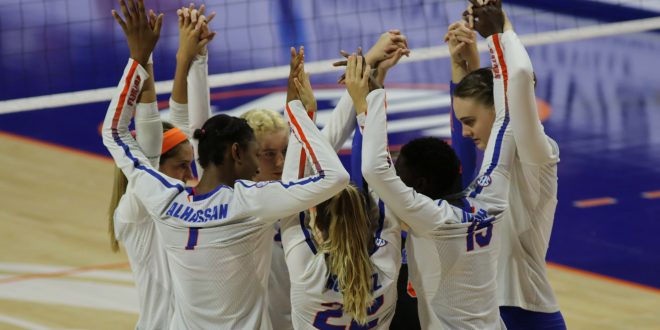 Alhassan led the Gators with a team-high 17 kills and four blocks, registering a .517 clip. Carli Snyder was her usual all-around self, stuffing the stat sheet with 16 kills, nine digs, three service aces, two assists and two blocks. Shainah Joseph added 11 kills, while Rachael Kramer had a team-high five blocks.