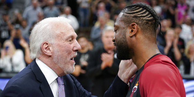 Erik Spoelstra’s team led by as many as 18, but the Spurs second-half shooting from long range (9-18 FG) brought them within three with 1:07 left in the game. Wade’s stealthy steal from behind on guard Demar DeRozan sealed the game with eight seconds to play. After the game, DeRozan and Wade exchanged jerseys and posed for a picture.