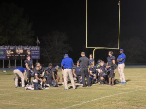 The two players who put the team on the board tonight were Avi Steiner, sophomore, and Devin Rollins, junior. Steiner shined once again with a 10-yard rushing touchdown, and Rollins went forth with a two-point conversion to give Saint Francis their first and final lead of the game during the first quarter.