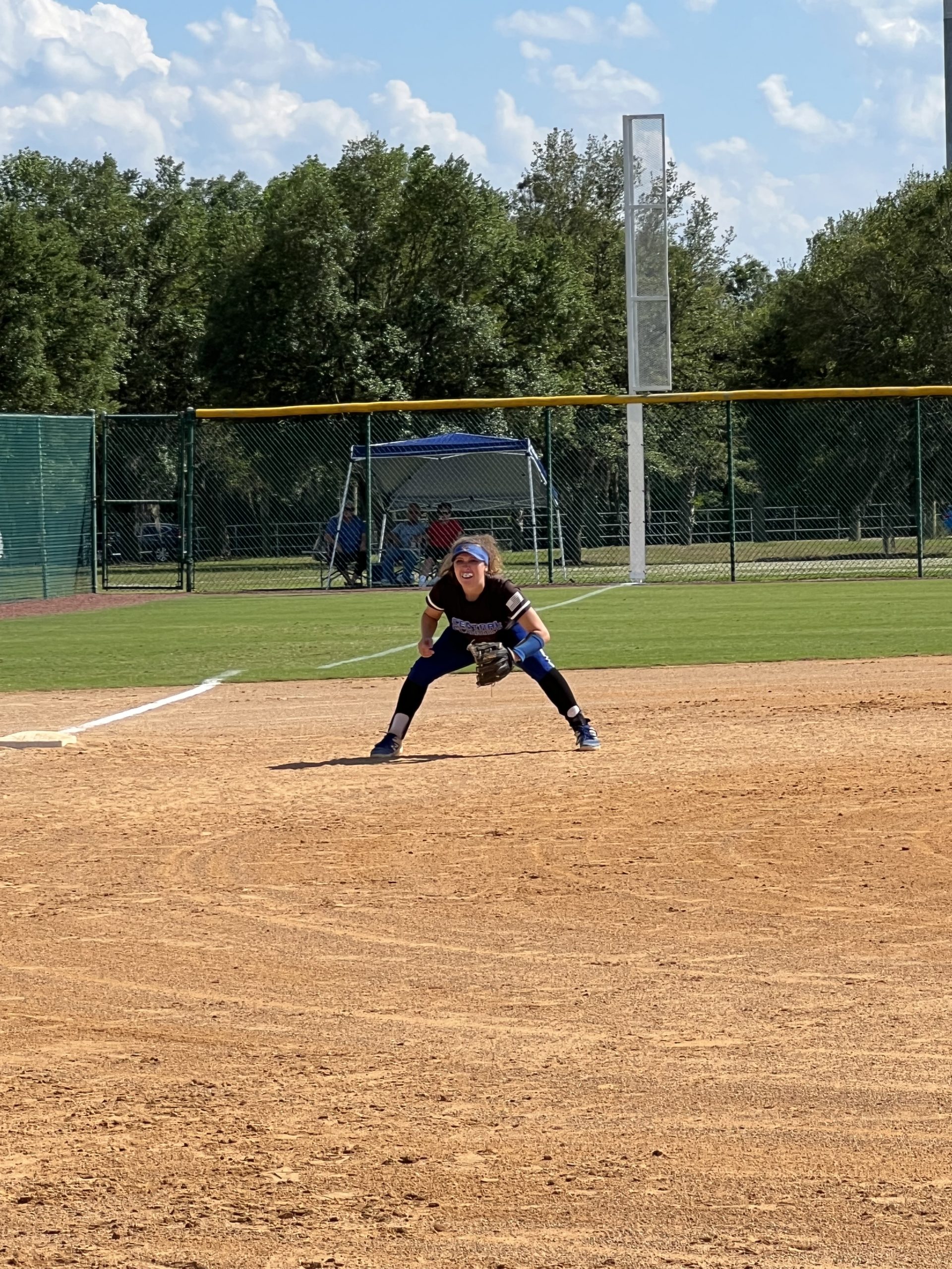 College of Central Florida Third Baseman Hailer Scott Taking Defensive Stance.
