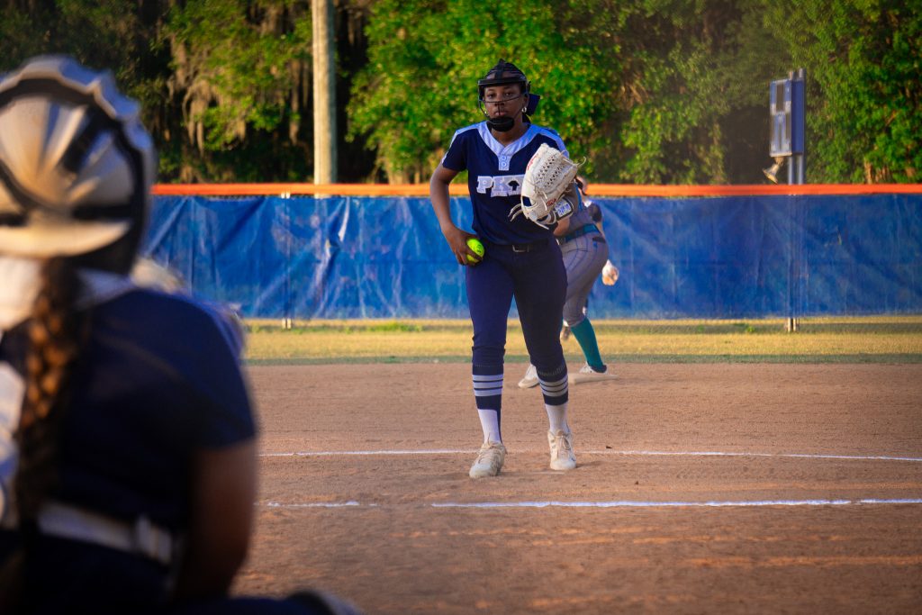 P.K. Yonge’s Meelah Mason before she makes the first out against West Port. [Jauntre’ Gray]