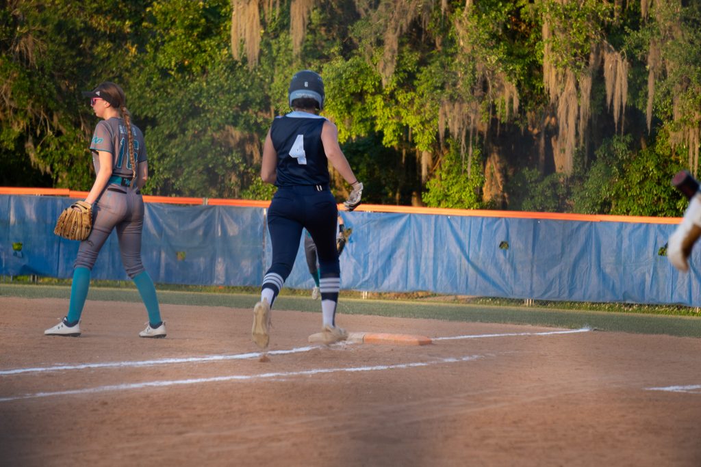 P.K. Yonge’s Sydney Corona positioned at first base, ready to advance to second base. [Jauntre’ Gray]
