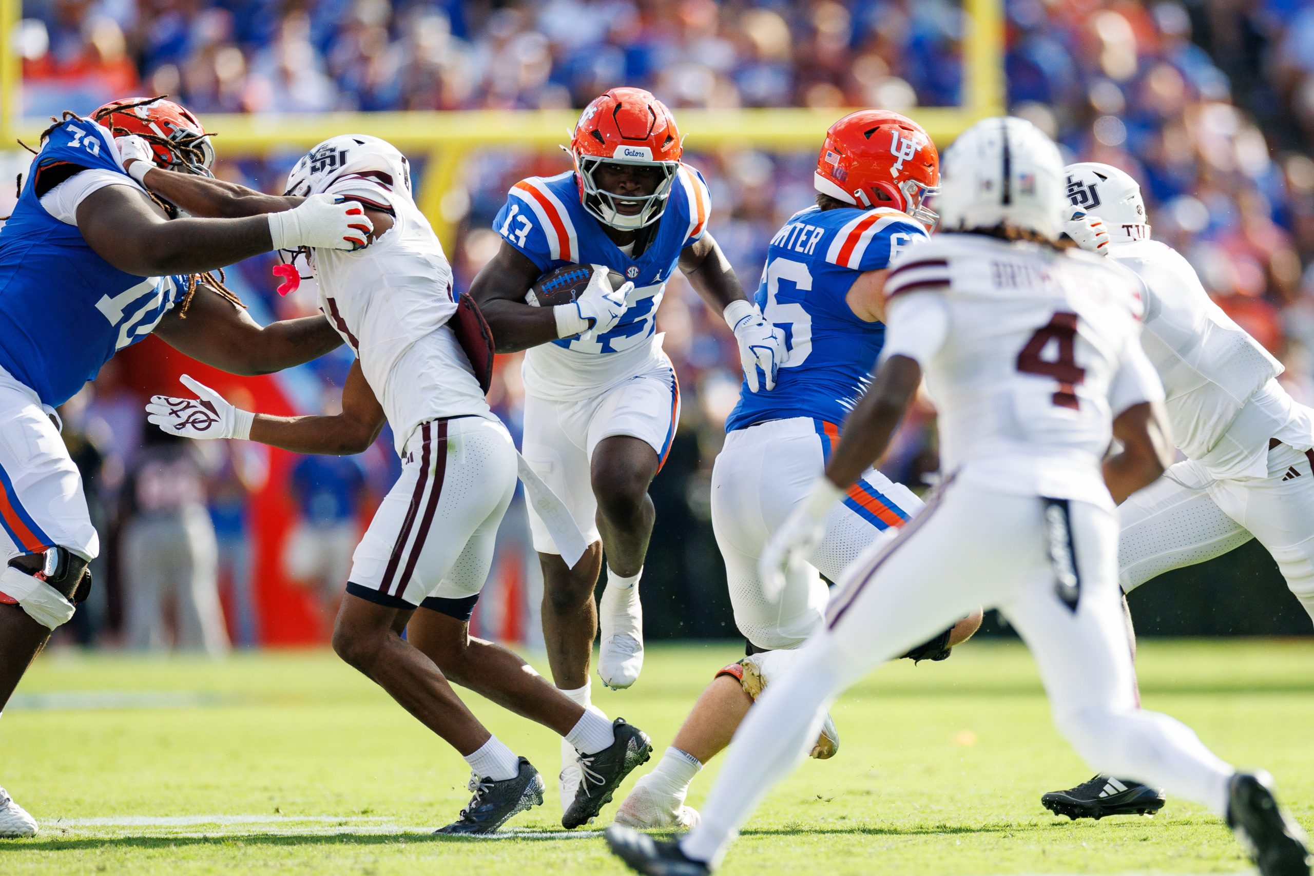 The Gators also had some homecoming luck on their side. Mississippi State running back Xavier Gayten fumbled in the red zone unprovoked. After a few steps with the ball, Gayten juggled and eventually dropped it to be recovered by Jayden Woods. On a later drive, the Bulldogs missed a 41-yard field goal.