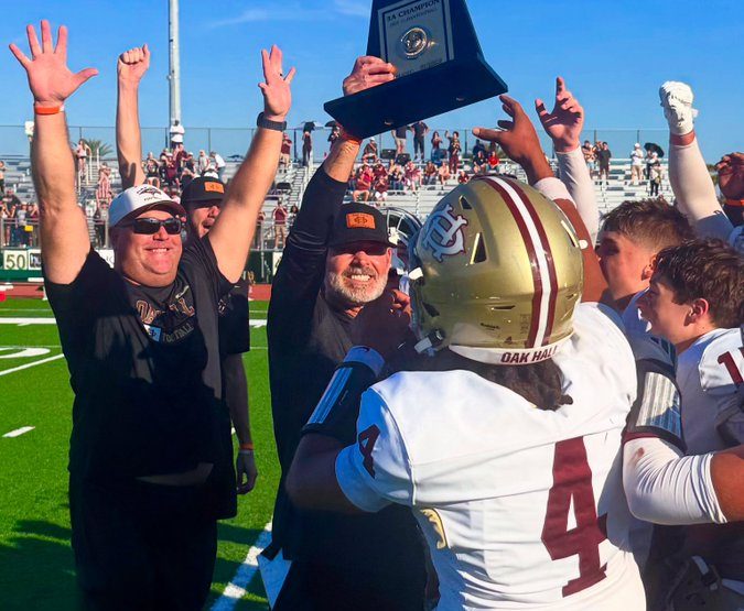 Oak Hall captured the Sunshine State Athletic Association 11-man 3A championship Saturday with a 27-10 win against Tampa Cambridge Christian at The Villages Charter School.