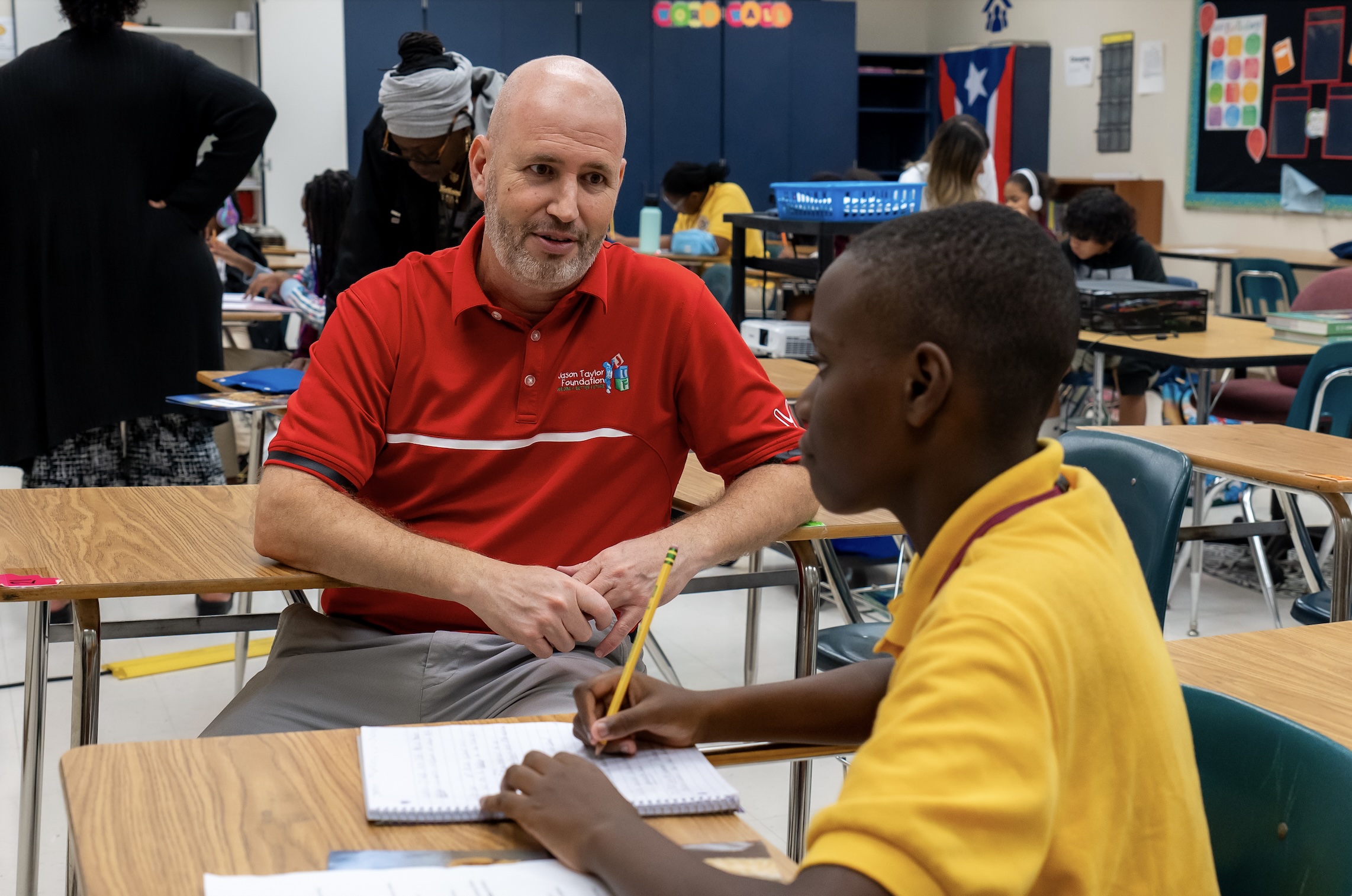 Levit speaking with a South Florida student with Jason Taylor Foundation. [Photo courtesy of Seth Levit]