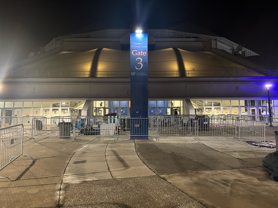 A pair of sophomores, polo batting against his knees and skirt against hers, drag their intoxicated bodies to the O’Connell Center and pull on its door. Carston Galilei, sitting on a stool, shouts. Spooked, they run before one trips. Like every other visitor, they don’t know why he sits out here so late.