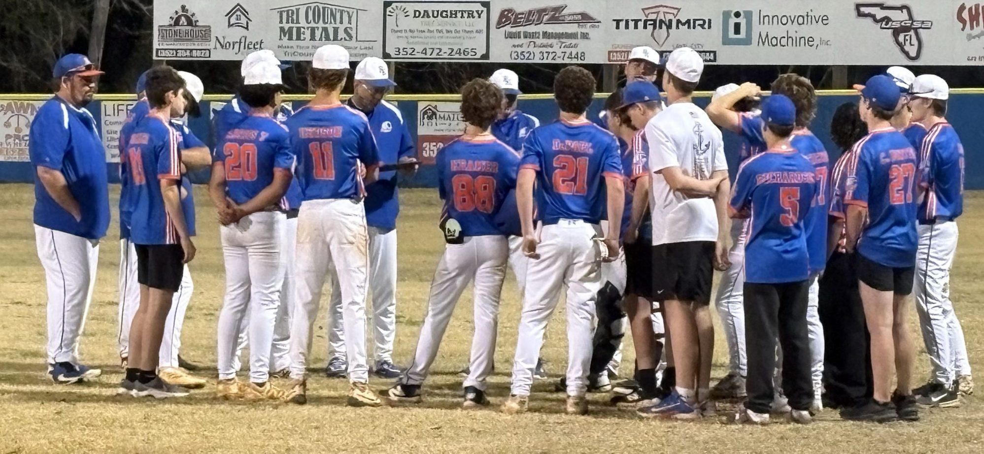 P.K. Yonge baseball meets after the loss Thursday at Newberry. [Adam Poupko/WRUF]