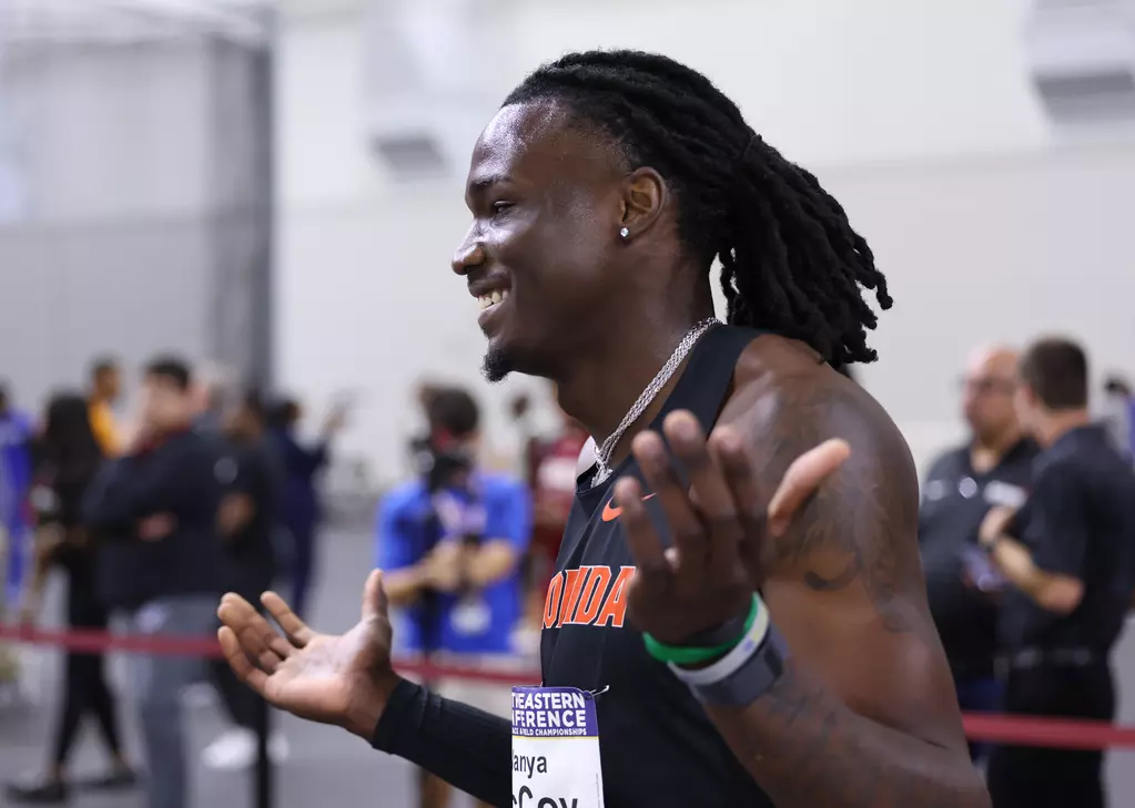 Senior Wanya McCoy is no stranger to the men’s 200-meter. With a time of 20.38, McCoy not only qualified but also placed first in the preliminary round with a new season best.