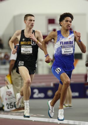 On day two of the SEC Indoor Championships, freshman Oussama Allaoui sits atop the men’s mile prelims to earn a place in the finals. (Photo credits: dyestat.com)