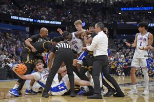 The scuffle is a microcosm of Sunday’s showdown. Iowa came out of the gate with seemingly much more physicality than Florida anticipated, muscling 32 points in the paint.