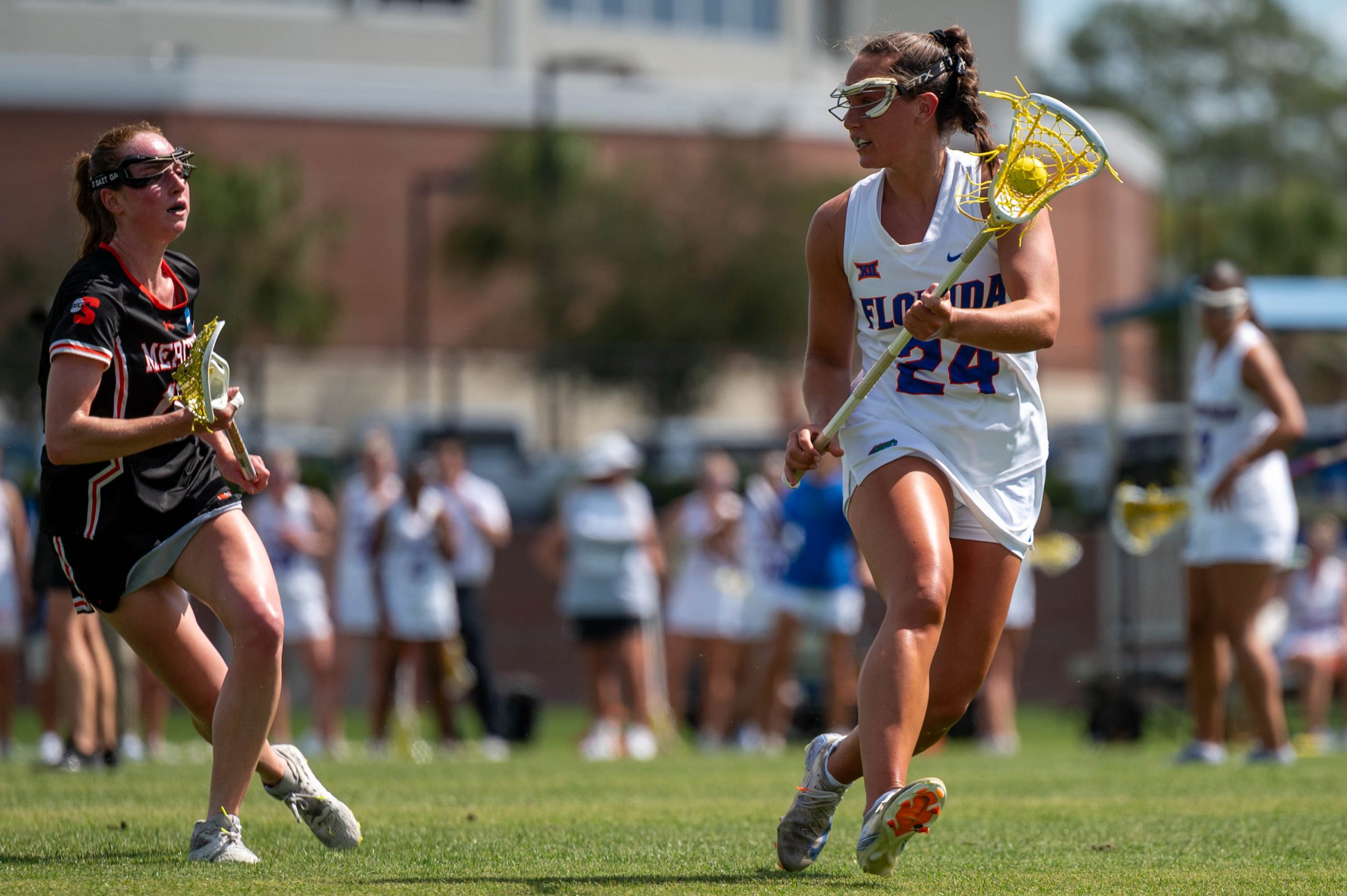Florida midfielder Gabbi Koury (24) cradles the ball during an NCAA women's lacrosse game against Mercer, Saturday, March 7, 2026, at Donald R. Dizney Stadium, in Gainesville, Fla. (Bayden Armstrong/WRUF)