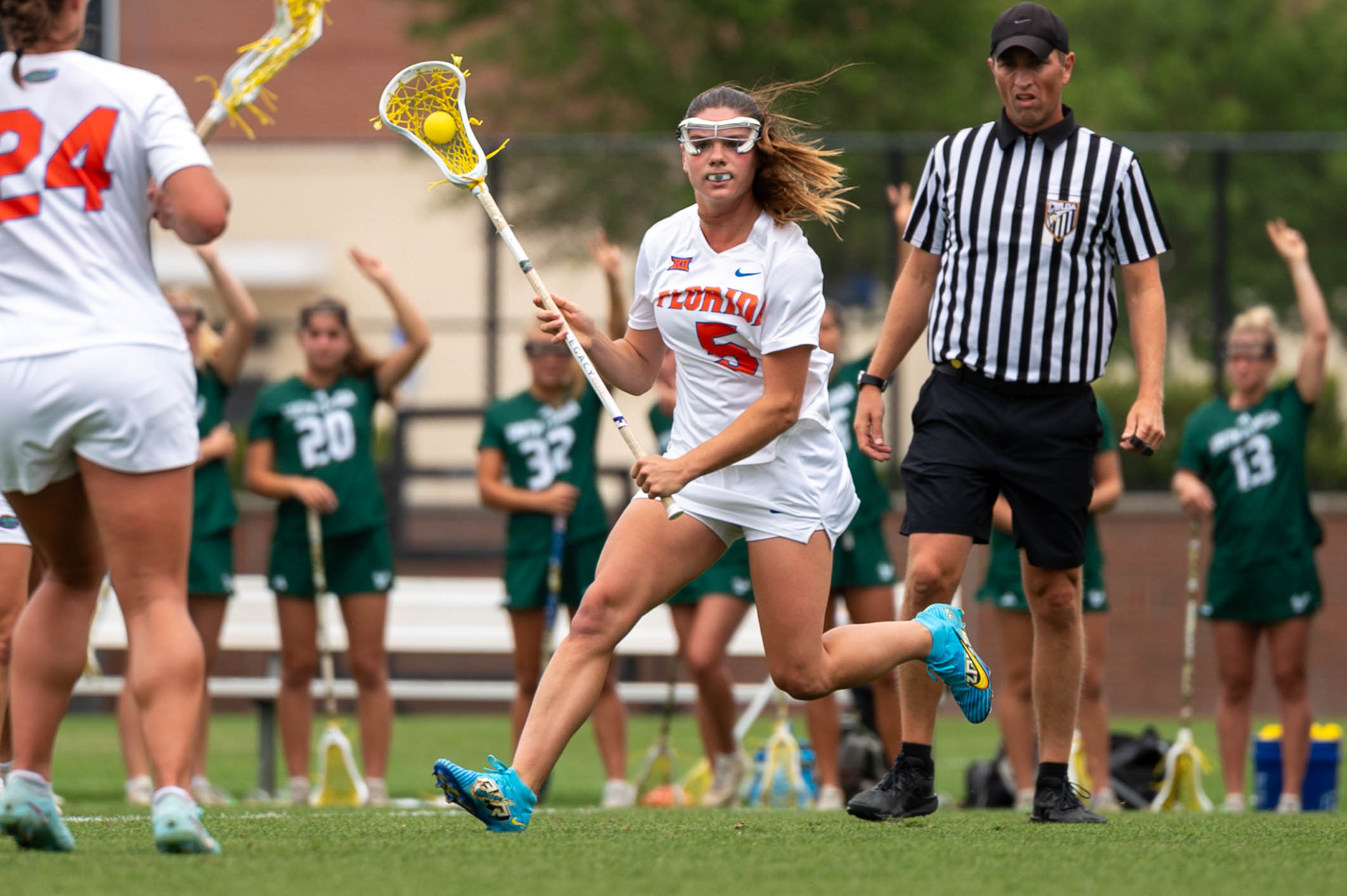 Florida took 32 shots, with 23 attempts alone coming from the first half. Eventually, shots turned into goals. Ten Gators notched at least one goal and ended their scoring droughts, including sophomores Caylin Luciano and Ryann Frechette, who scored their first goals since Kennesaw State, and freshman Jameson Swords, who scored her second career goal in the third quarter.