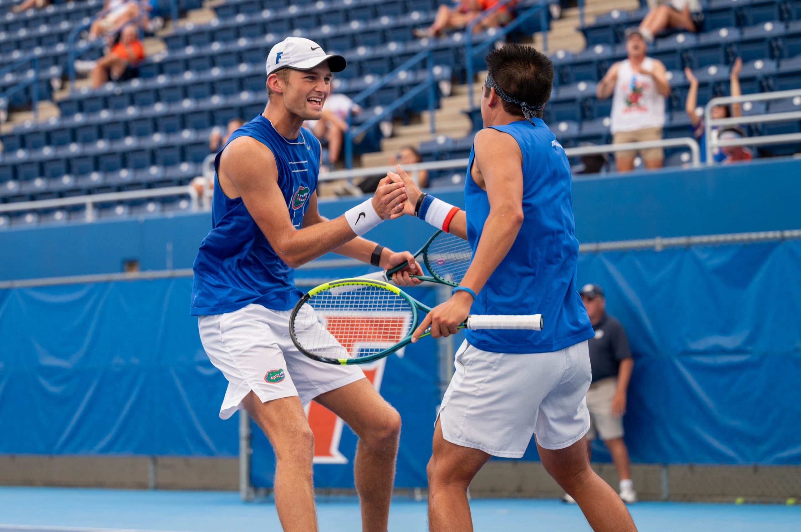 Florida started doubles play strong. Its court two duo of Adhithya Ganesan and Pablo Perez Ramos earned a convincing 6-1 win over Nicholas Heng and Alan Bojarski, putting the Gators one match away from the doubles point.