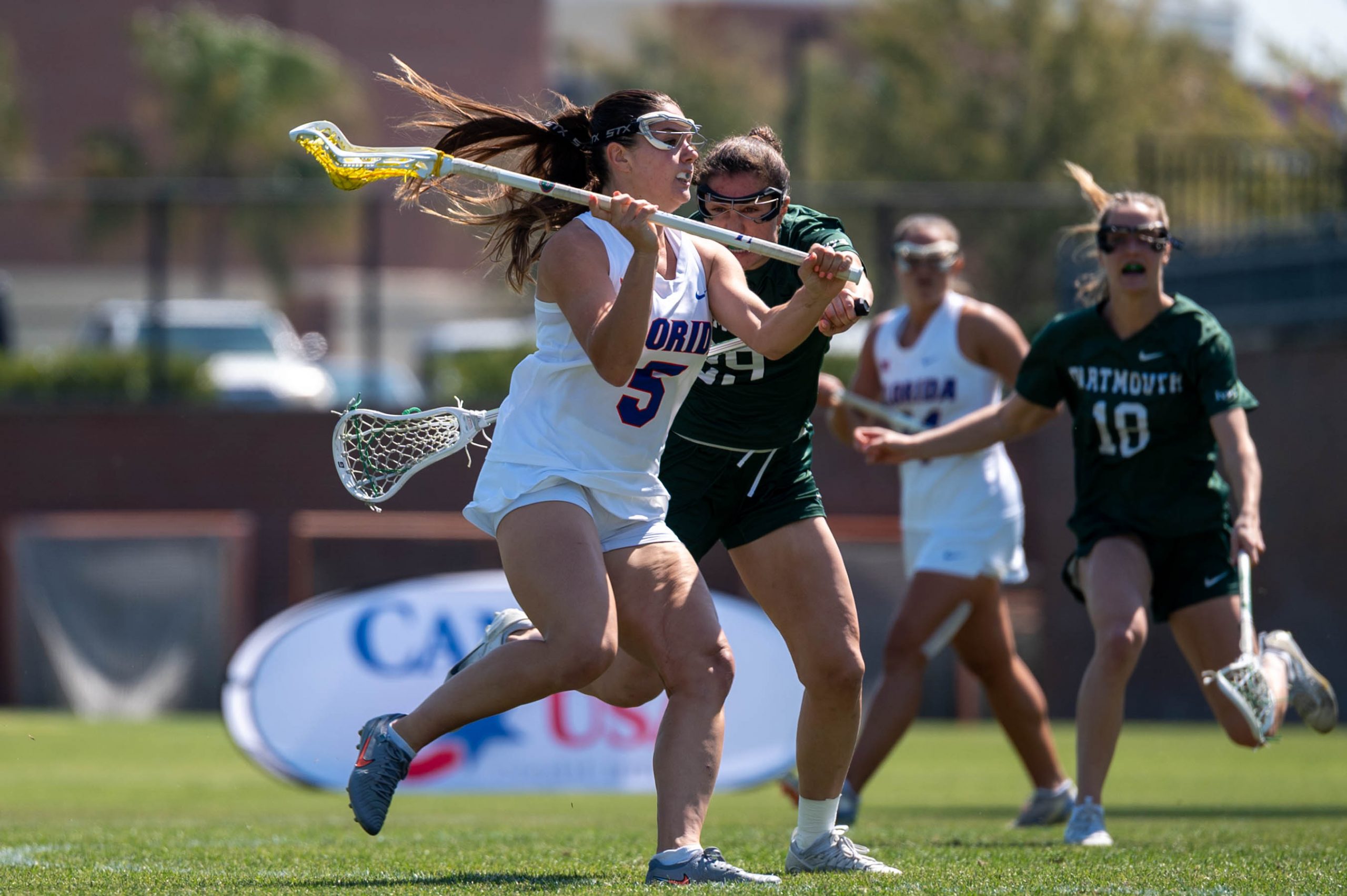 The Gators (14-2, 5-0) only scored two goals in the first. Thanks to the help of seniors Jenny Woodings and Ava Kristynik, Florida dominated the second quarter with eight unanswered goals.