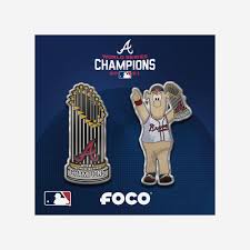 Atlanta Braves 2021 World Series Champions Mascot & Trophy 2 Pack Pin Set Officially Licensed by MLB